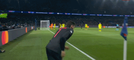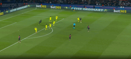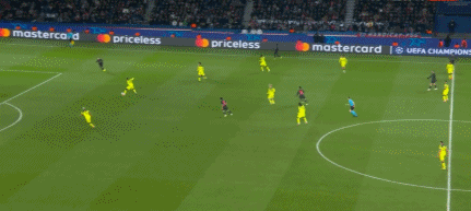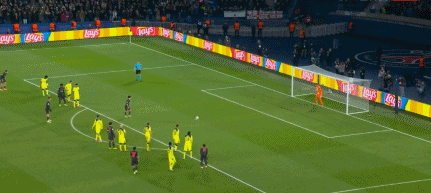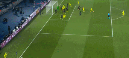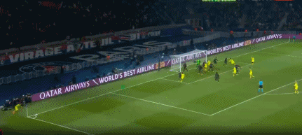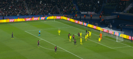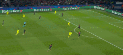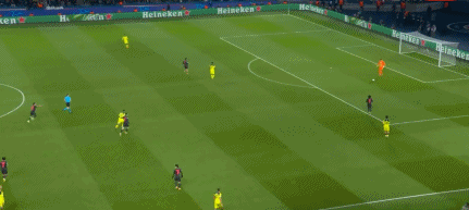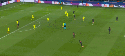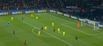 第45分钟,扳平比分,维蒂尼亚弧顶前迎球抽射破门,巴黎1-1
