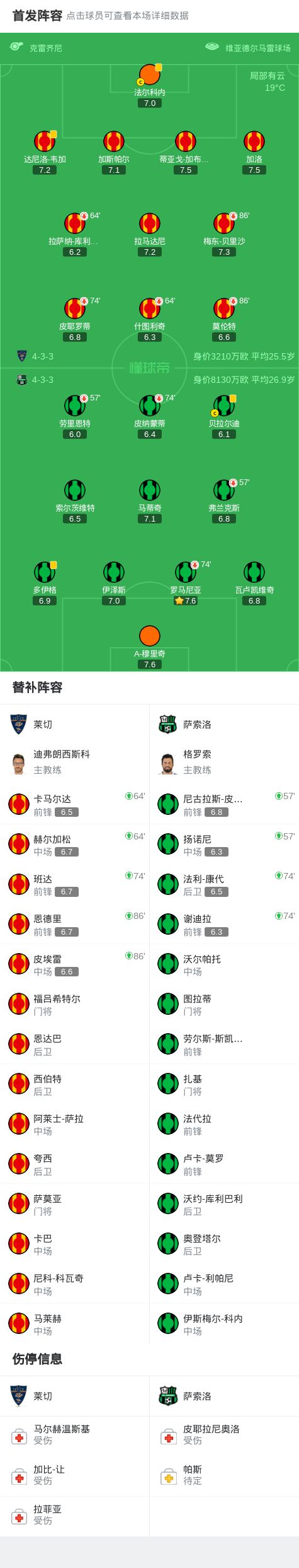 北京时间10月18日意大利足球顶级联赛 联赛 第7轮,莱切主场对阵萨索洛。最终比分莱切 0